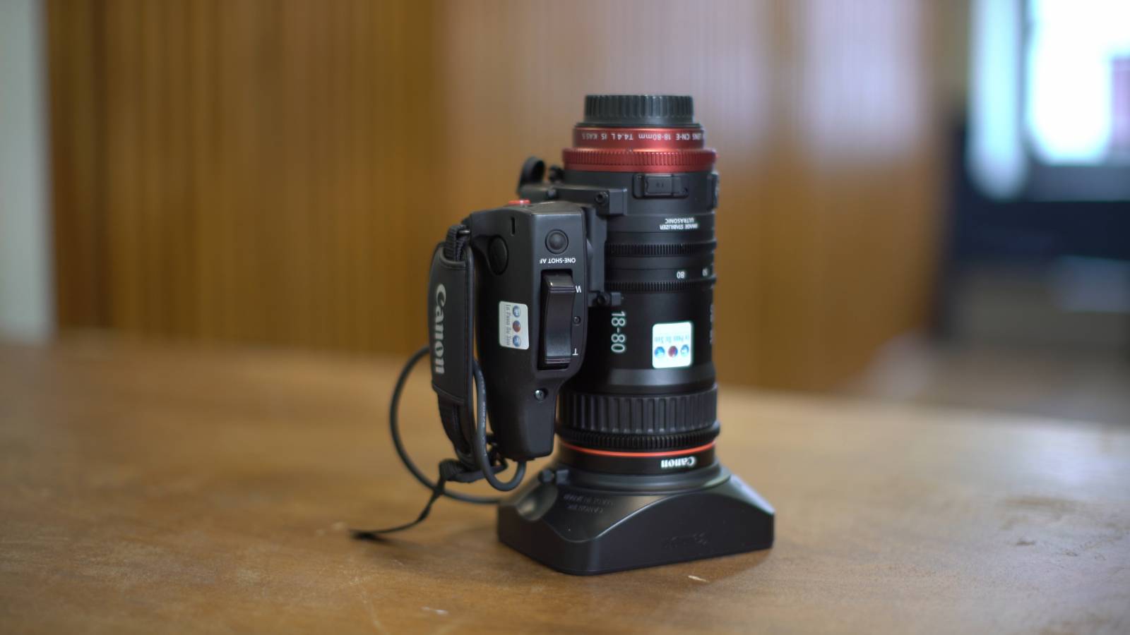 Canon CN-E 18-80mm cinema optics have revolutionized the world of cinema and the audiovisual industry: motorized zoom, provided by a classic ENG style grip named ZSG-C10, allowing to control the zoom rocker, which facilitates the shooting if you turn with a stick shoulder or freehand.