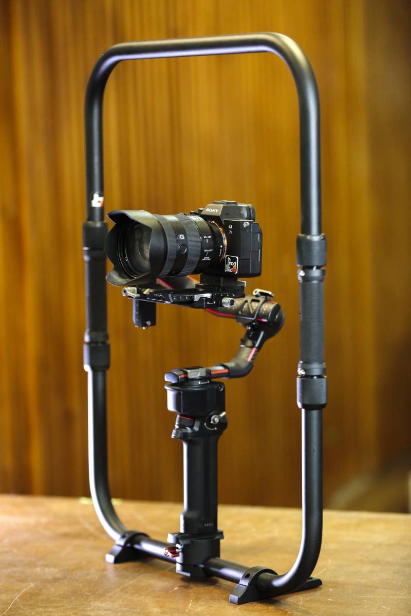 The Universal Ring DF DIGITALFOTO is a rectangular structure that frames the Ronin S2 or Zihuyn Crane 3S or 2S. Used with the Easyrig Minimax, which can support up to 7kg, also available for rental at French Production Service, it allows a better grip thanks to its aluminium alloy frame. This configuration allows you to film for longer periods of time without getting tired by adopting a comfortable posture. It is lightweight and comes with an ARRI rosette adapter that can be used to attach a monitor. It also has support feet that allow it to stand up easily.